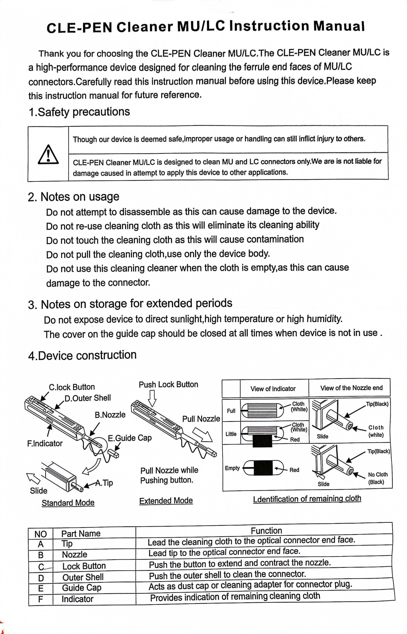 The pen uses optical-grade fine fiber filaments (microfiber cleaning strips) to safely clean the ferrule without scratching. Each activation advances fresh cleaning tape and provides consistent results for up to 900 cleaning operations per pen.