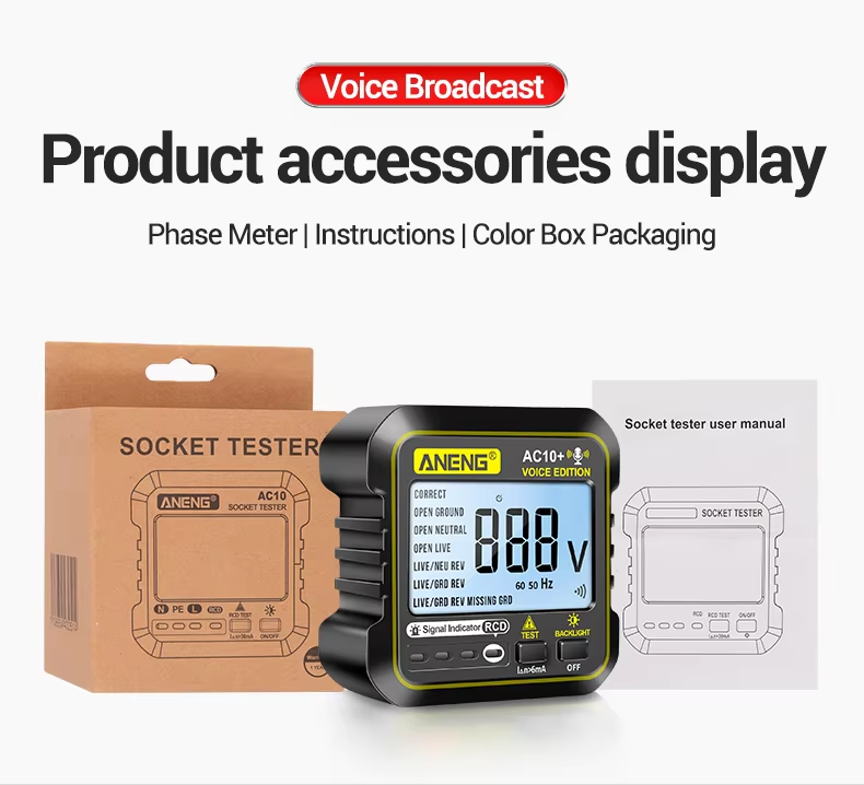 Framleiddur úr hágæða efnum, þessi mælir styður 220V og kemur með 1 árs ábyrgð. Hvort sem þú ert að bilanagreina innstungur eða staðfesta uppsetningu, skilar AC10+ áreiðanlegri frammistöðu í hvert skipti.
