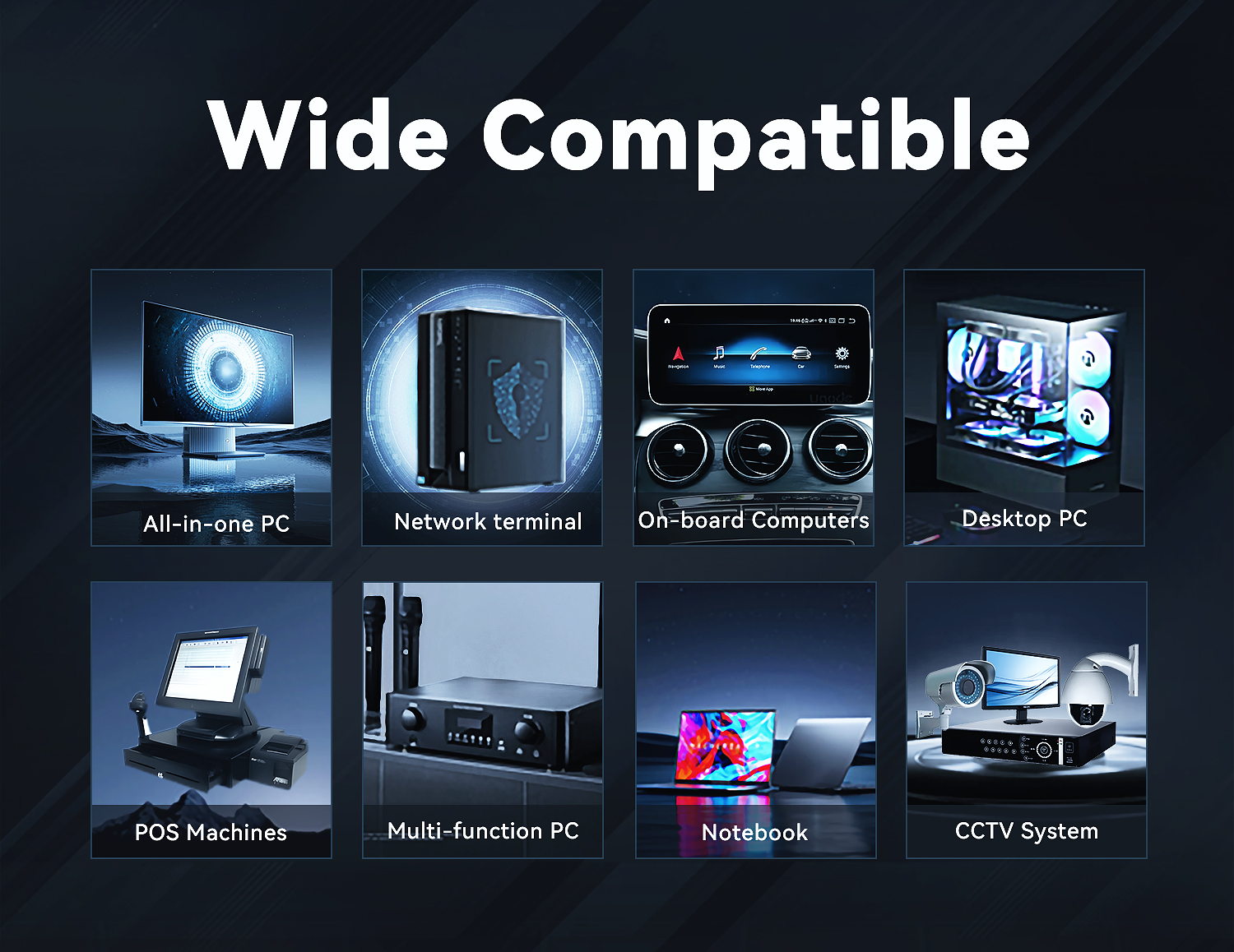 • Notkun: Fartölvur, borðtölvur, innbyggð kerfi