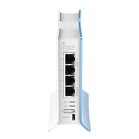 hAP lite er með öflugum 650MHz örgjörva, 32MB vinnsluminni, tvíkeðju 2,4GHz innbyggðu þráðlausu neti, fjórum Fast Ethernet-tengjum og RouterOS L4-leyfi. USB-straumbreytir fylgir með.