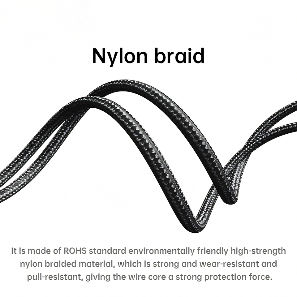 Fléttað ytra byrði þýðir að kaplarnir eru mjúkir, sveigjanlegir, auðveldir í meðhöndlun og mjög endingargóðir.